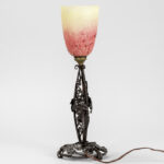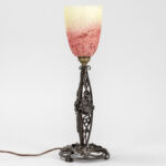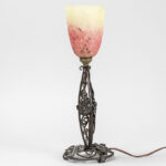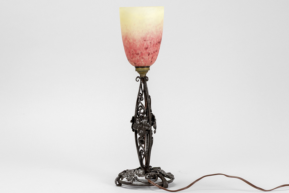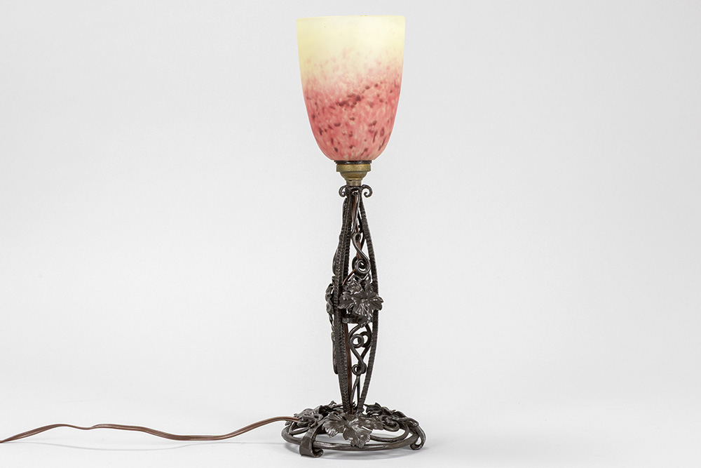 Schneider signed Art Deco lamp in wrought iron and pâte de verre