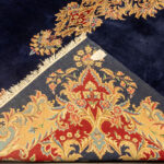Vrij grote Perzische Kashmar met zgn spiegeltekening op een blauwe fond – 407 x 474 cm