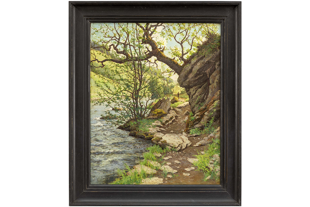 ASSELBERGS ALPHONSE (1839 – 1916) olieverfschilderij op doek : “Zomerlandschap met beek” – 66 x 54 getekend