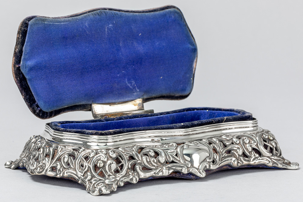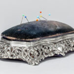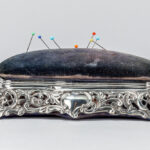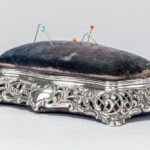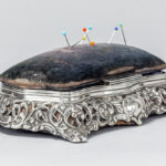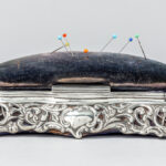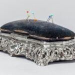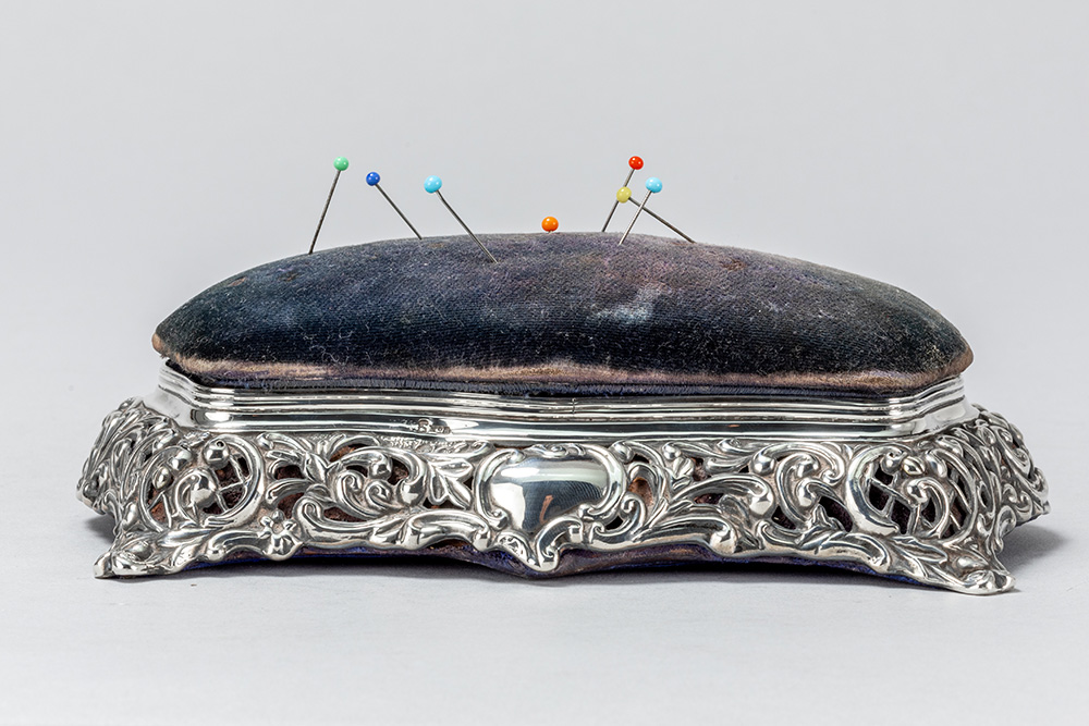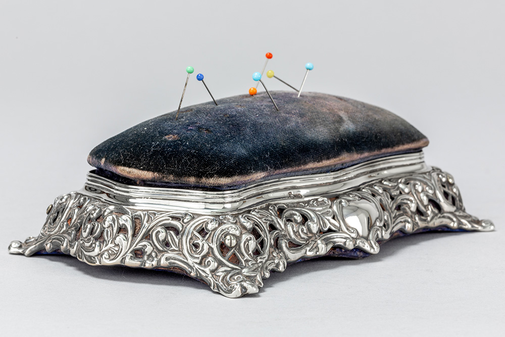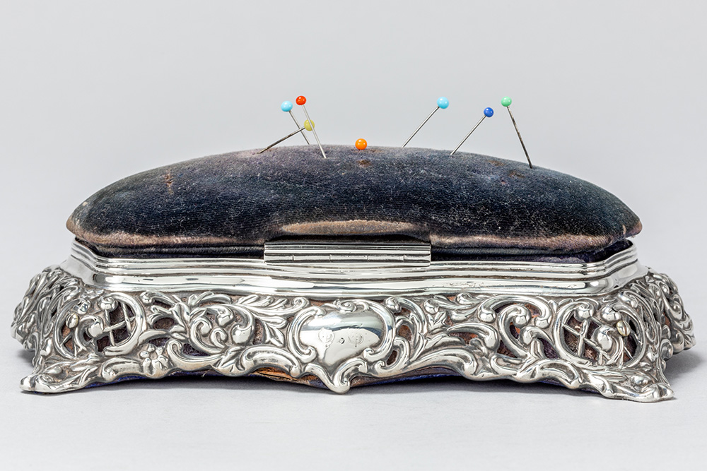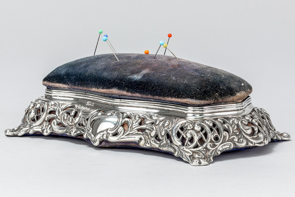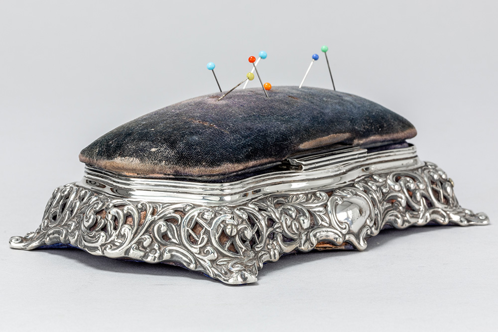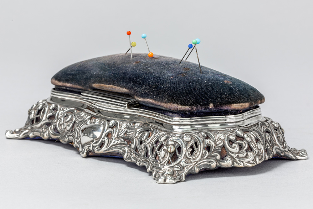 antique box with needle cushion in “Birmingham 1896” marked silver