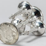 CARRINGTON & C° kleine antieke milieu de table met vier vaasjes, een zgn épergne”, in massief zilver, gemerkt “925 – Birmingham 1911” – hoogte : 18 cm getekend