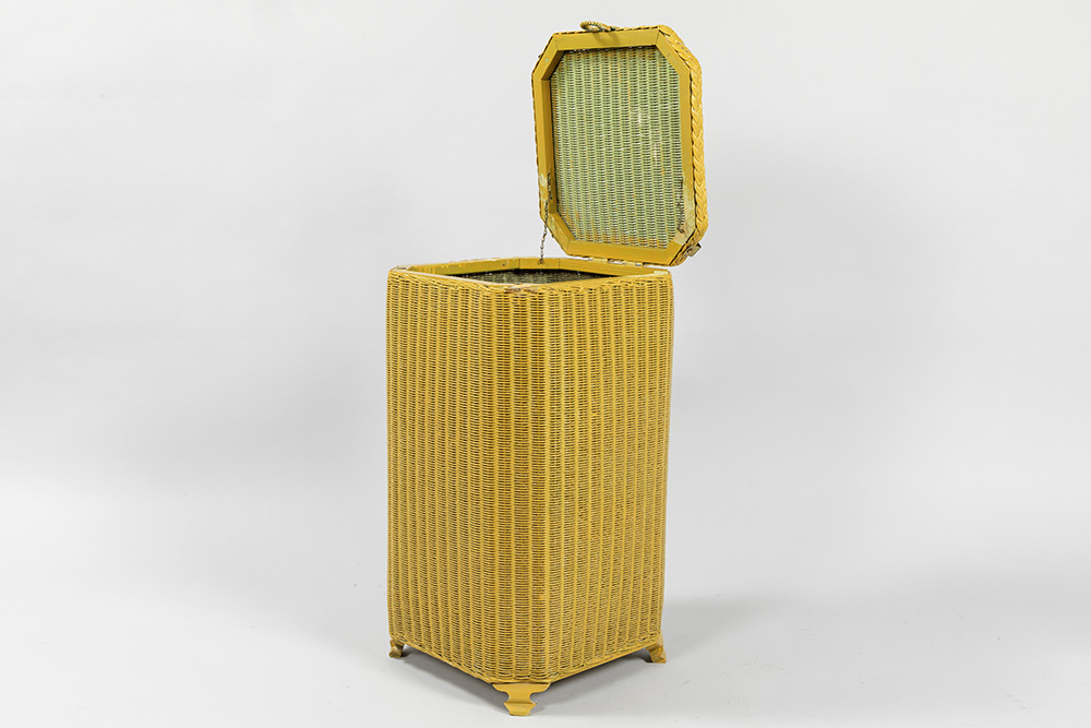 LLOYD LOOM Art Deco linnenbakje in geel gelakt vlechtwerk – ca 1930/40 – 58 x 32 x 33 cm gemerkt