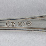 Lot (14) massief zilver, gemerkt ‘800’, met bestek en servietteringen – totaal gewicht : 804 gram