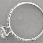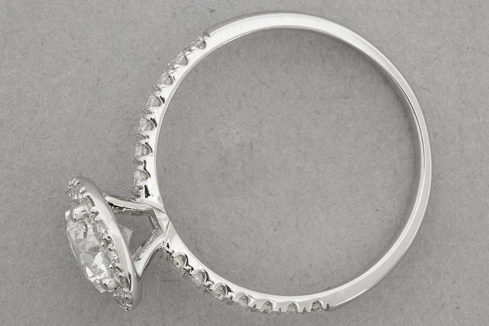 nice ring in white gold (18 carat) with a central 0,80 carat high quality brilliant cut diamond surrounded by (also on the ring) 0,36 carat of very high quality brilliant cut diamonds with IGI certificate for the big diamond – size 51,5