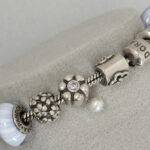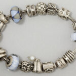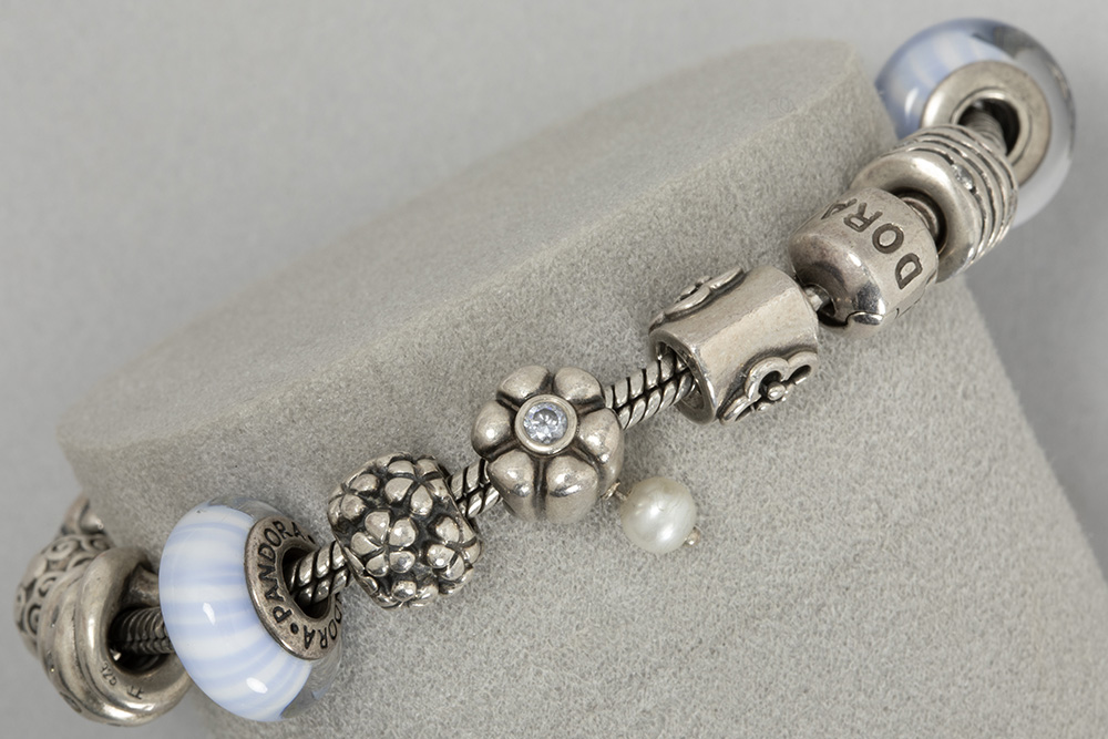 PANDORA bedeltjesbracelet in “925” gemerkt massief zilver met zestien typische pendatiefjes – gewicht : 70 gram gemerkt