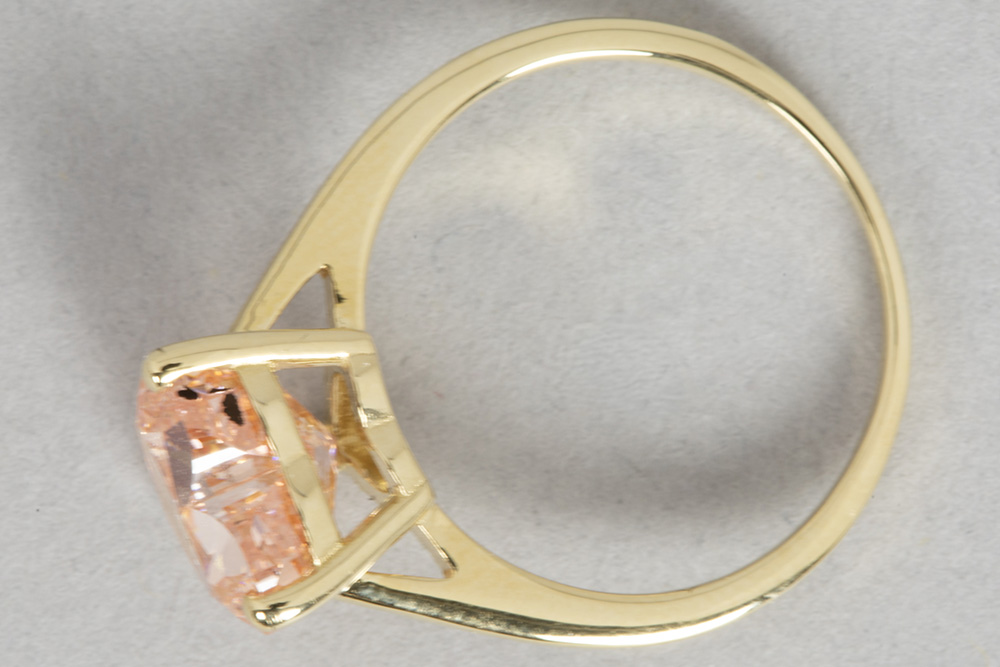 Hartvormige fancy “pink orangy” CVD kwaliteitsbriljant (Vs1) van 3 karaat gezet in een ring in geelgoud (14 karaat) met IGI certificaat