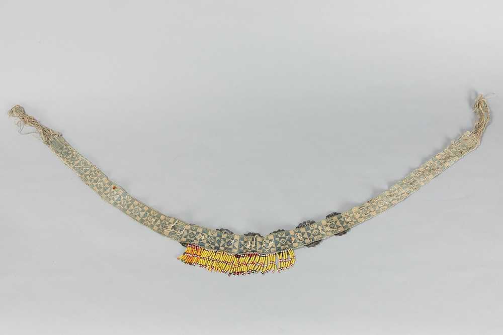 19th Cent. traditional Georgian belt in textile with silver ornaments with beads
