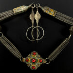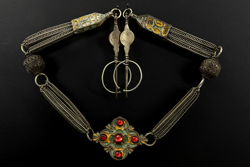 antique African-ethnic jewel in a silver alloy with typical enamel work and inlaid stones