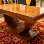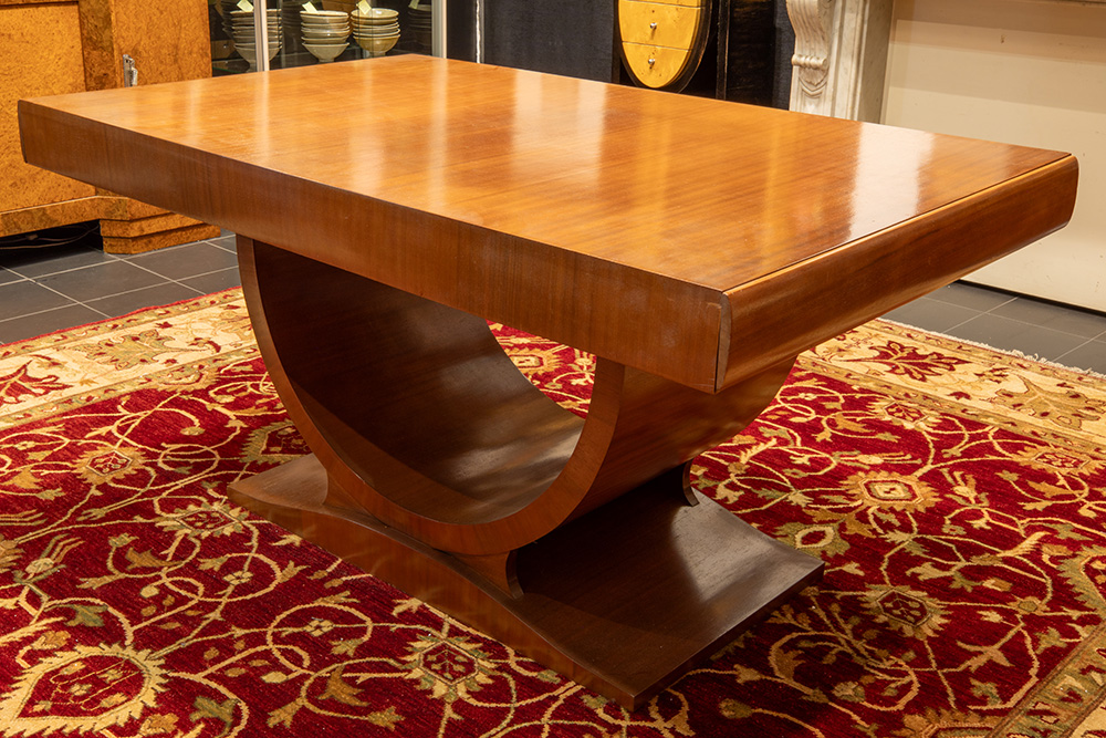 Art Deco-tafel in acajou met rechthoekig blad op een liervormige steun op rechthoekige basis – ca 1930 – 78 x 153 x 95 cm