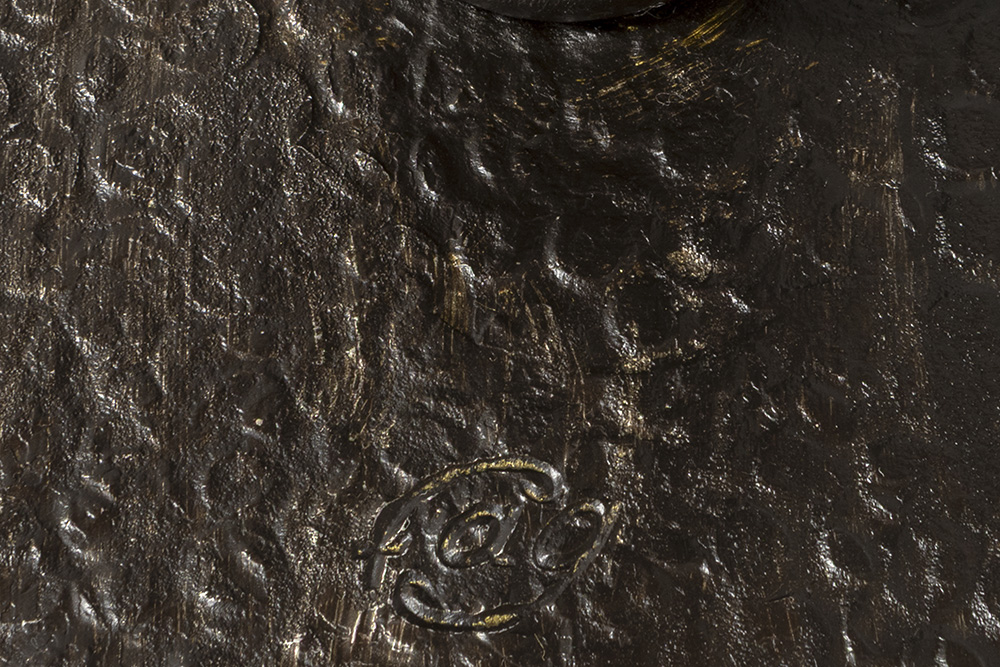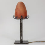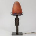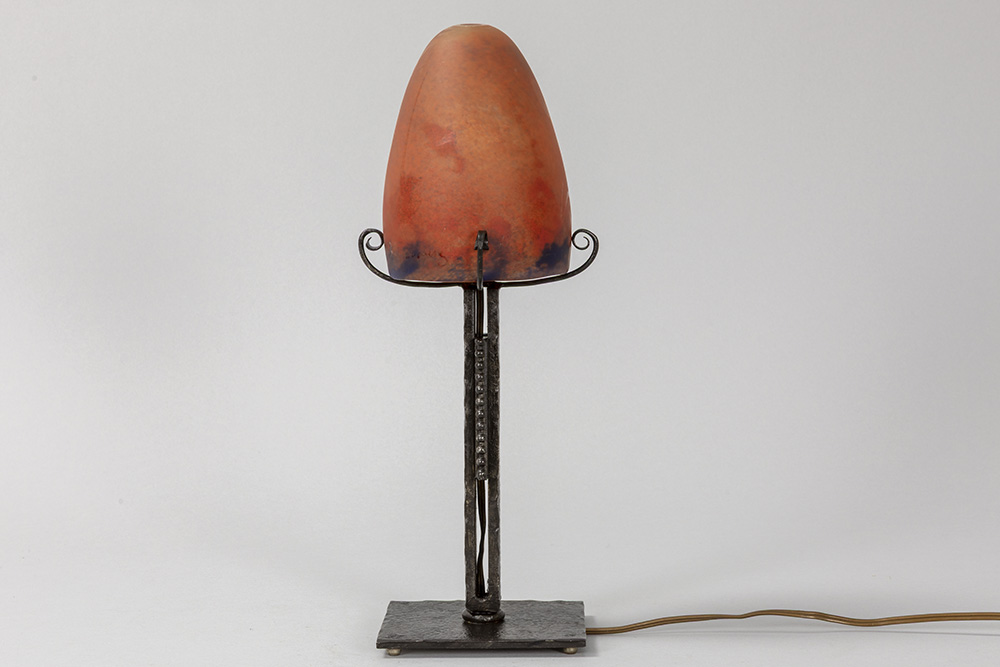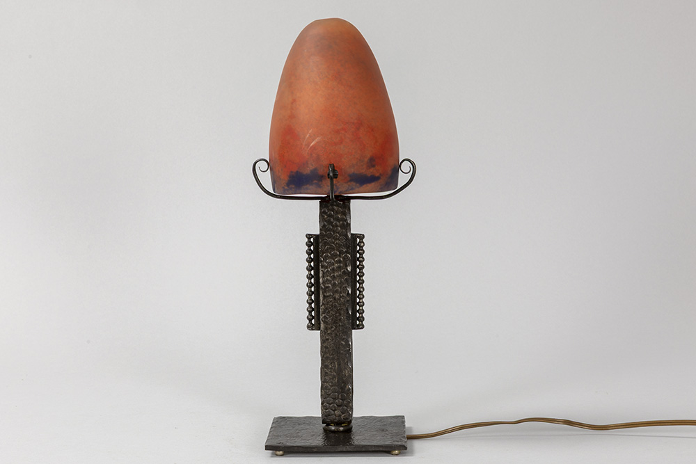 illegibly signed (B. Dubourg ?) Art Deco lamp in wrought iron and pâte de verre