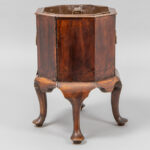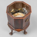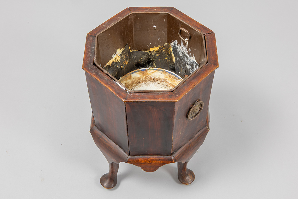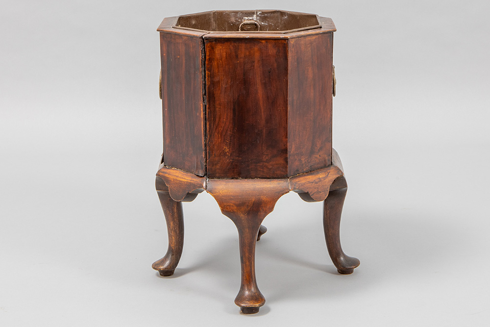 Antieke Engelse theestoof in notelaar op paddenvoetenpootjes – hoogte : 42 cm