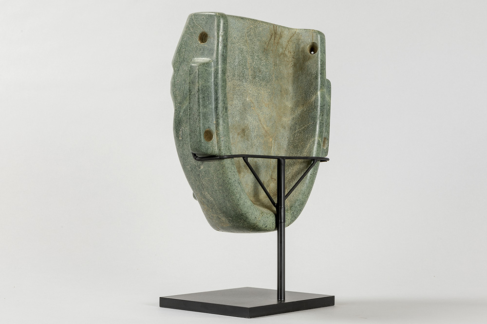 Jade dodenmasker in Teothihuacan-stijl – hoogte : 22 cm – gemonteerd prov : Bob Jones van de Jones Gallery in Amsterdam