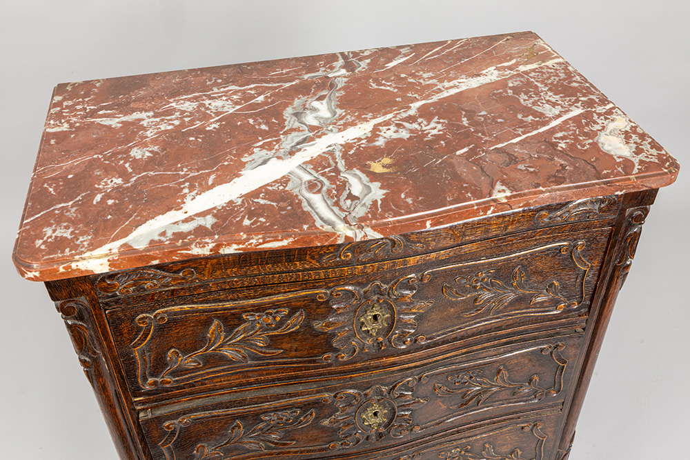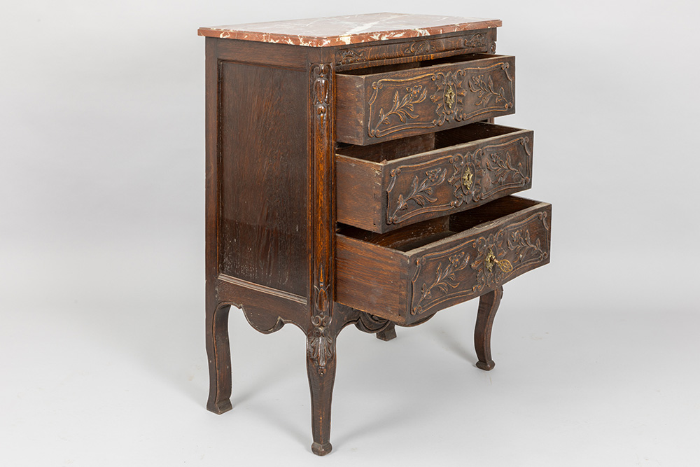 small neoclassical chest of drawers in oak with marble top