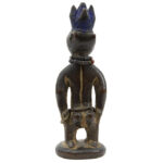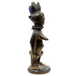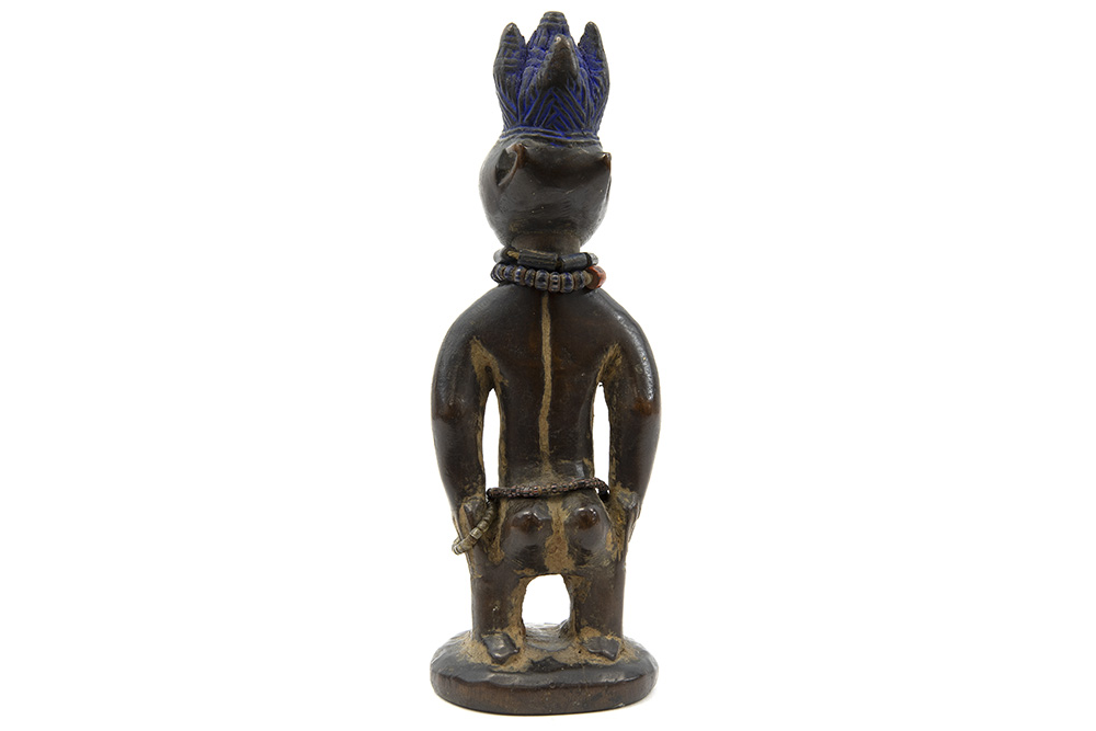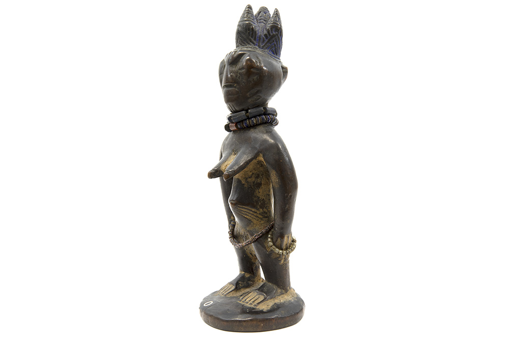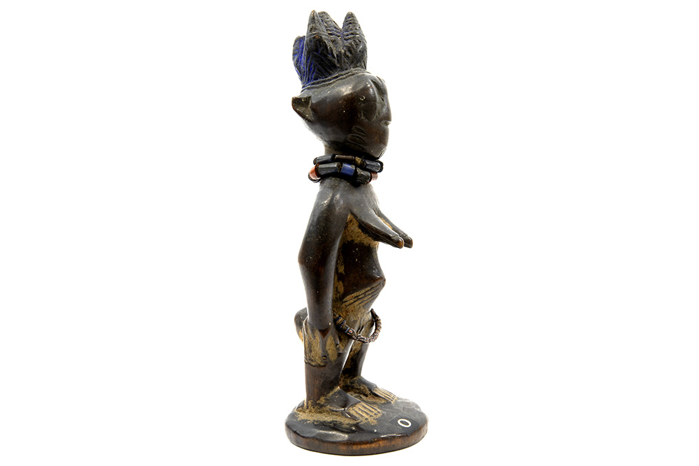 old West African Ibedji sculpture from the Yoruba in wood with vegetal fibers waistband and with pigments