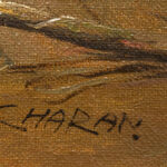 Charan (?) signed oil on canvas with a scene with a portrait artist working