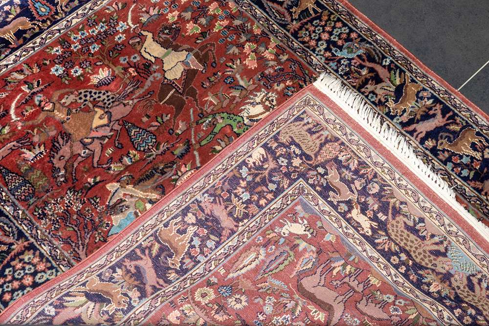 Fijngeknoopte Agra Ghoum met een jachttekening – 184 x 128 cm