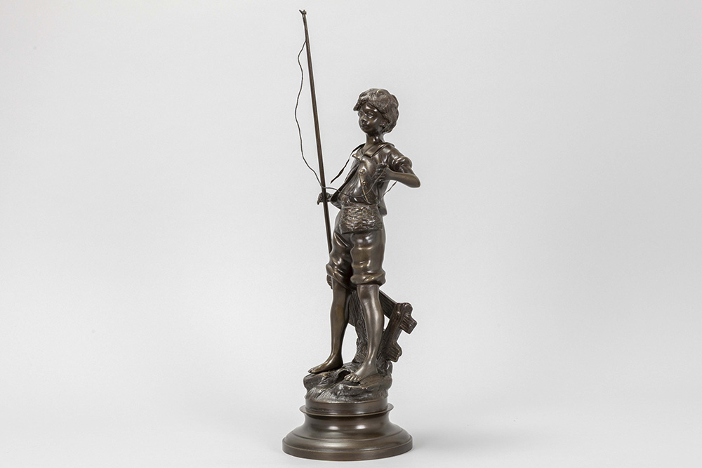 Lot 453 Lot: 453 Your Bid: Sculptuur in brons : “Vissertje” – hoogte : 51 cmsmall sculpture in bronze Auctionday 28/02/2026 Estimation - euro << back to the catalogue