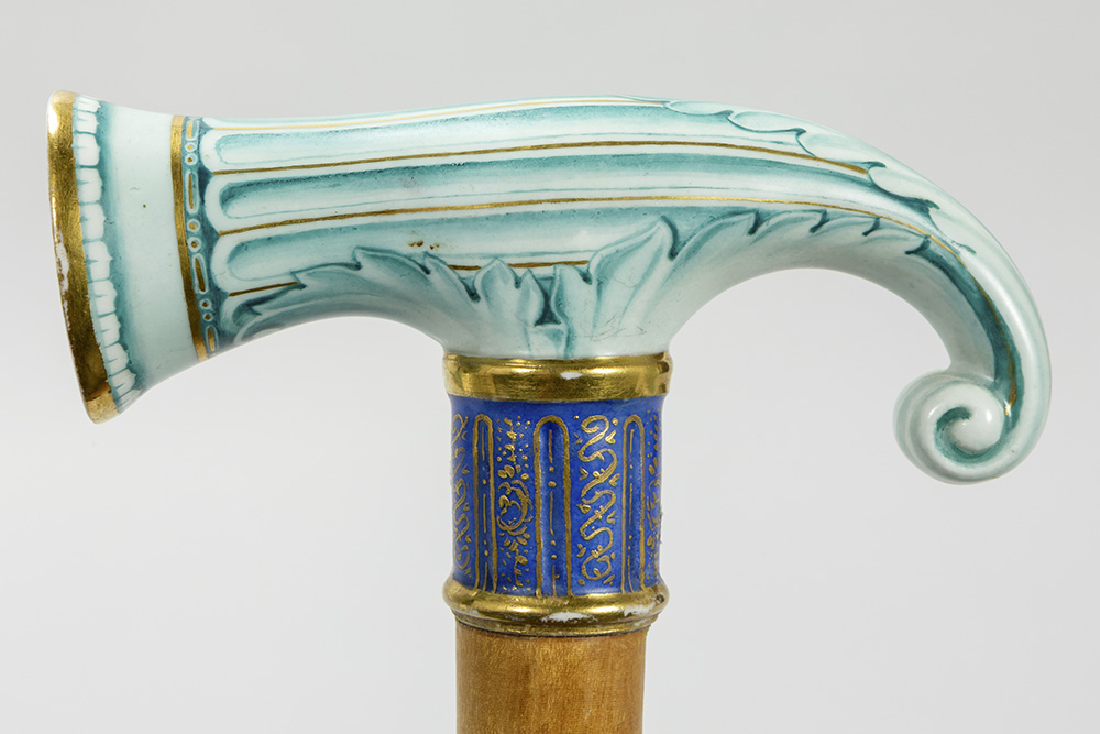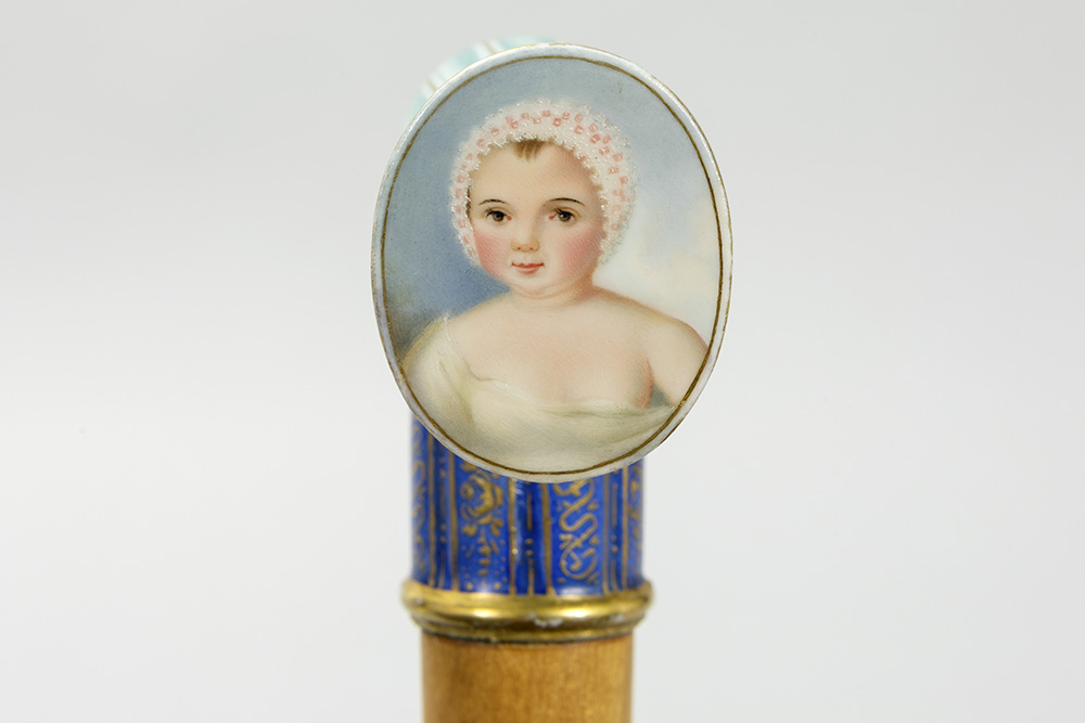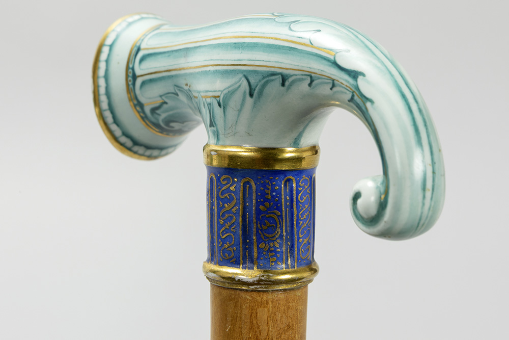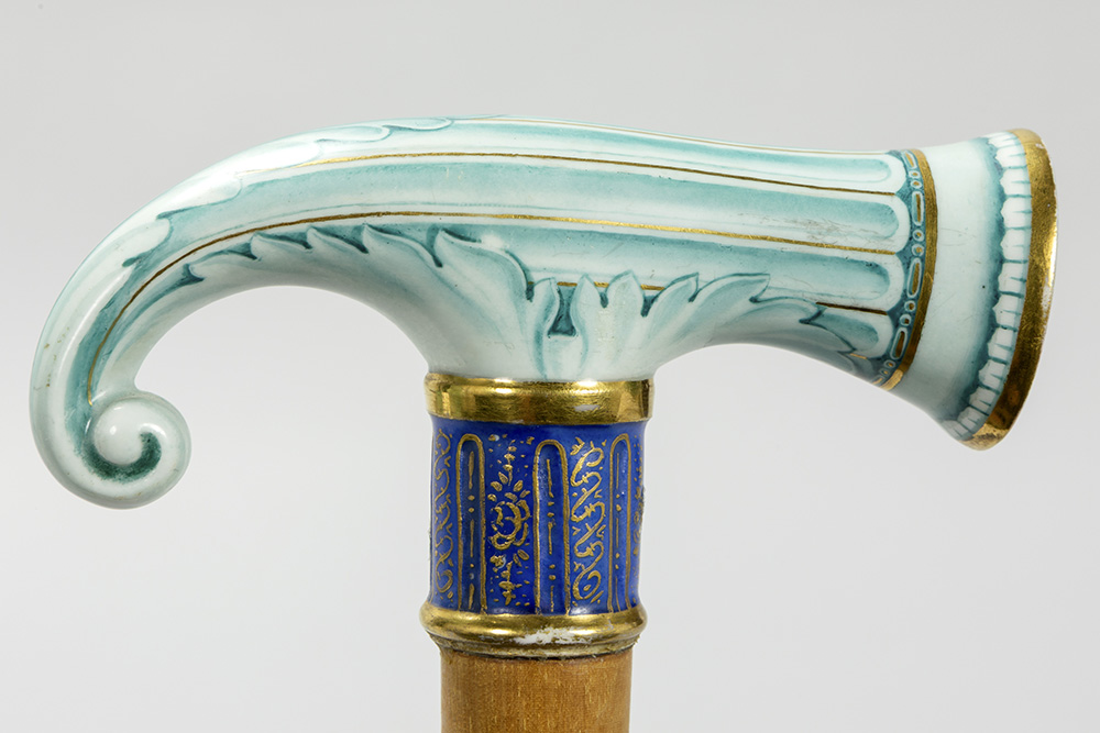 antique walking stick with grip in Meissen porcelain with a girl’s portrait