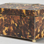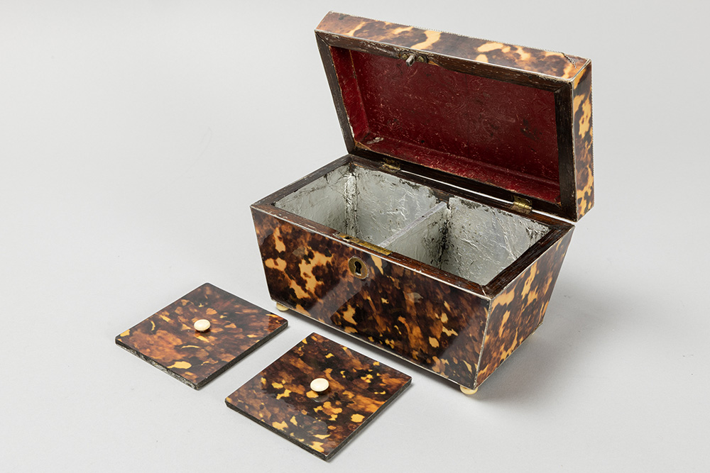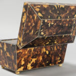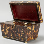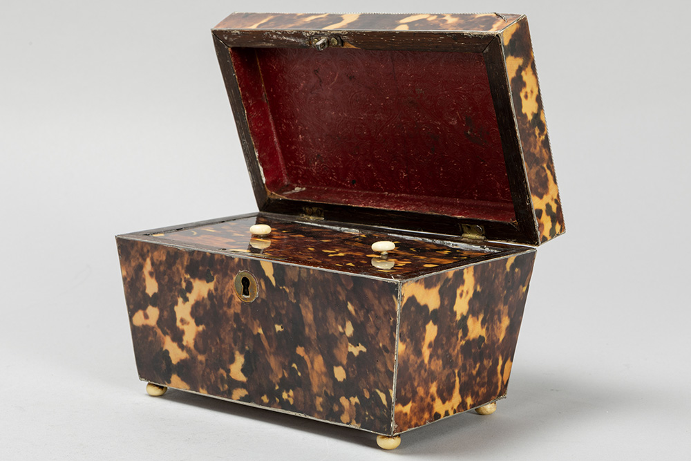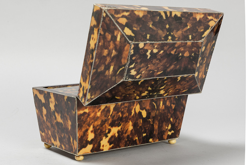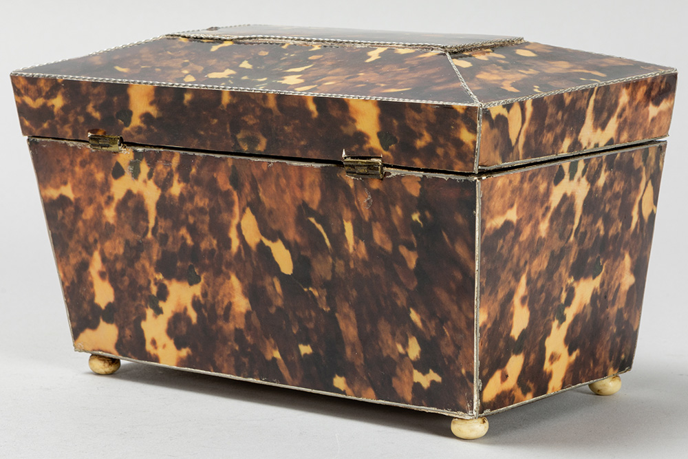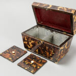 antique Dutch tea box in tortoiseshell with silver inlay and with leather interior