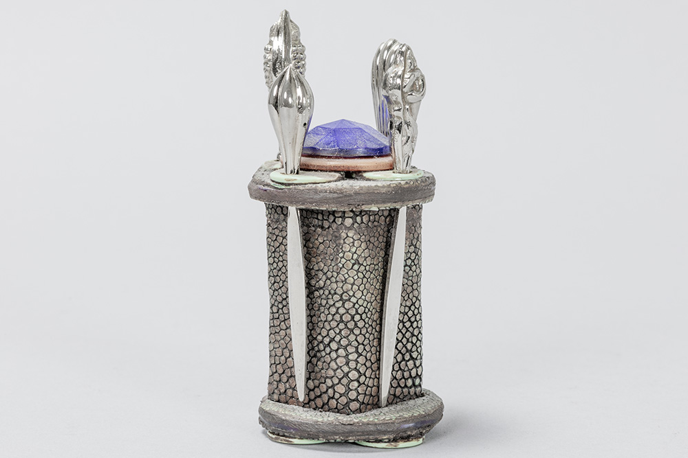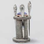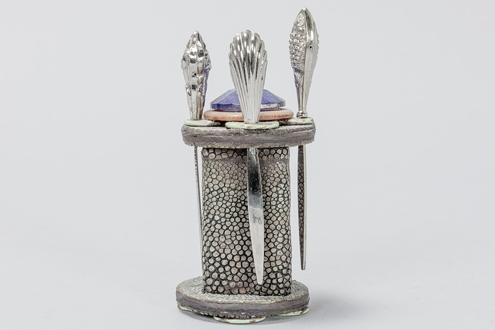 Art Deco cocktail sticks set in shagreen and TCW sterling creations marked silver