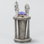 Art Deco-cocktailprikker set in segrijnleder (shagreen) en “TCW sterling creations” gemerkt massief zilver – hoogte : 10 cm – gewicht: 15 gram