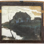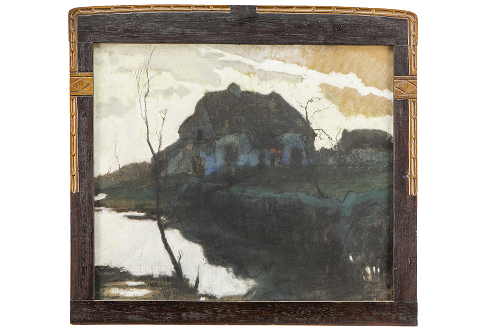 VAN HOOSTE JOZEF (1884 – 1940) werk in gemengde techniek op karton : “Nocturne met verlichte hoeve” – 68 x 78 getekend en gedateerd 1925