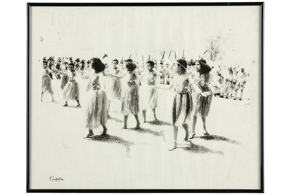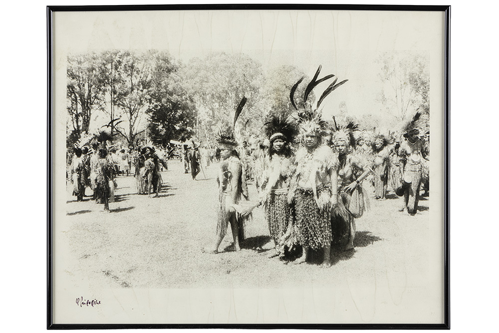 five infra red photographs, made by Yves Prigogine with views of a Goroka Show in Papua New Guinea