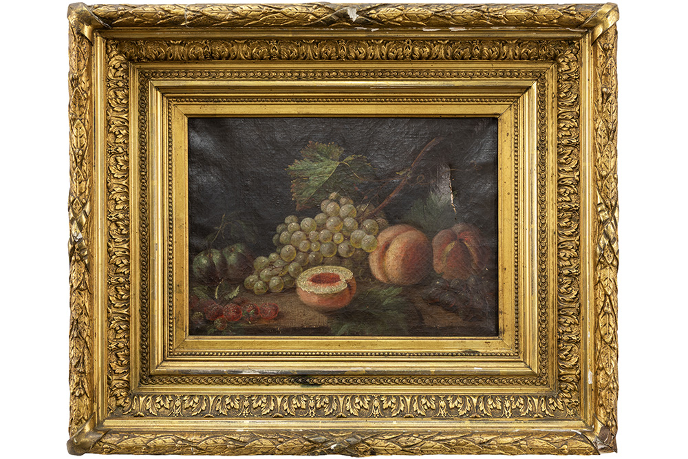 Onleesbaar getekend 20ste eeuws, allicht Belgisch olieverfschilderij op doek : “Stilleven met fruit” – 27 x 35