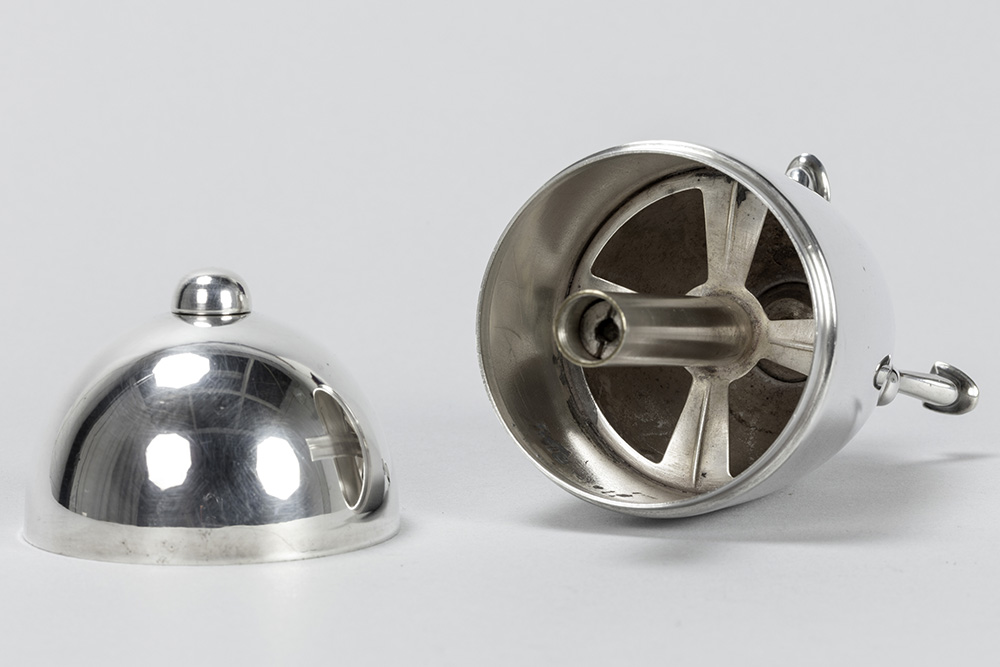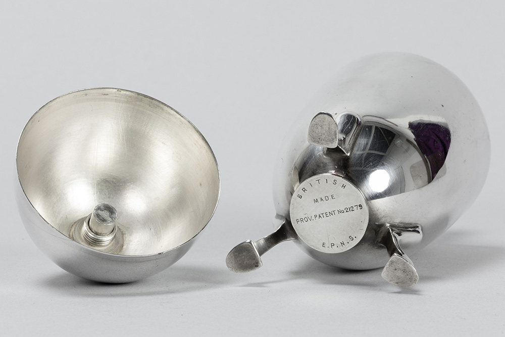 Engelse strooier in EPNS-zilver, gemerkt “English Made Patent n° 21279” – hoogte : 14,5 cm – gewicht : 248 gram