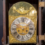 imposing antique Dutch longcase clock with a case in finely carved fruitwood and a “H. Van Leiden – Amsterdam” signed work