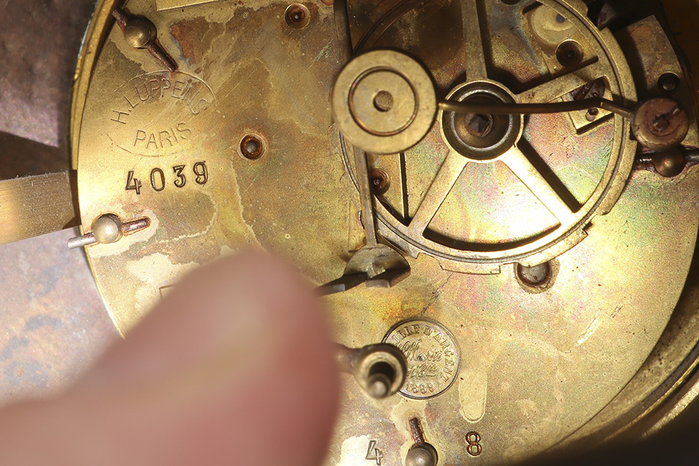 antique garniture in gilded and patinated brass with a clock with its work signed H. Luppens