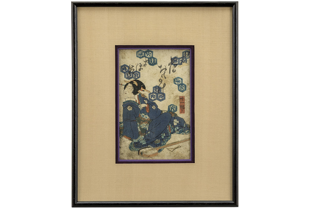 Lot van drie Japanse houtsnedes telkens met de voorstelling van een geisha – 17 x 11