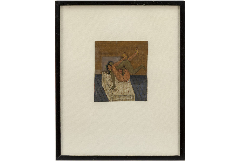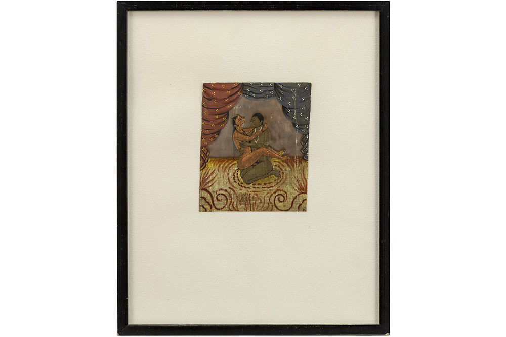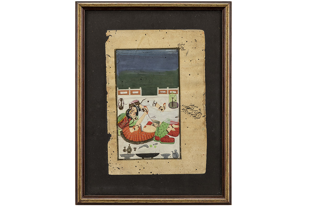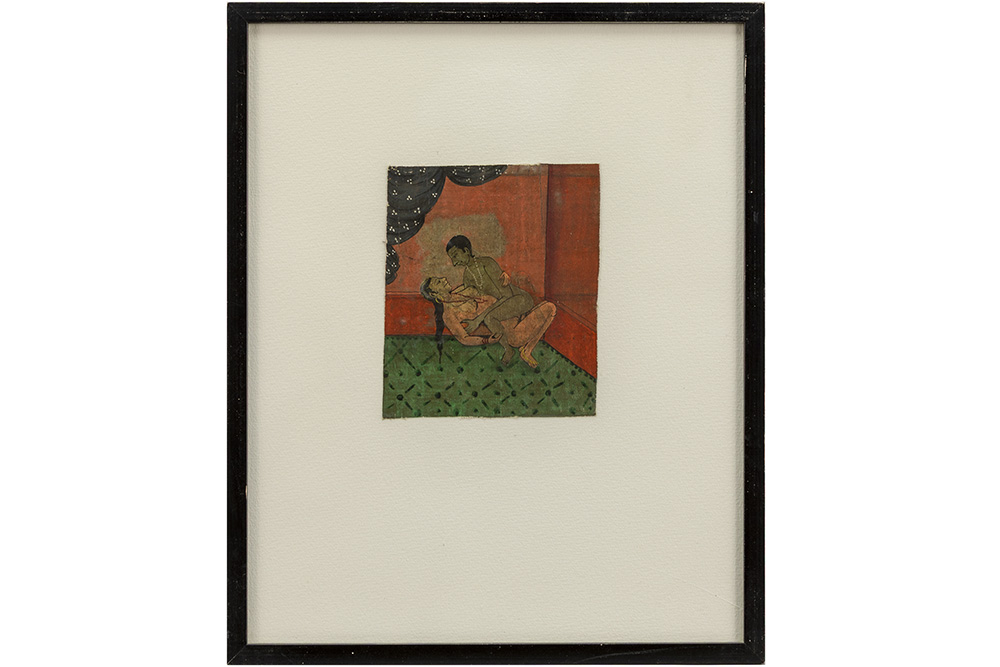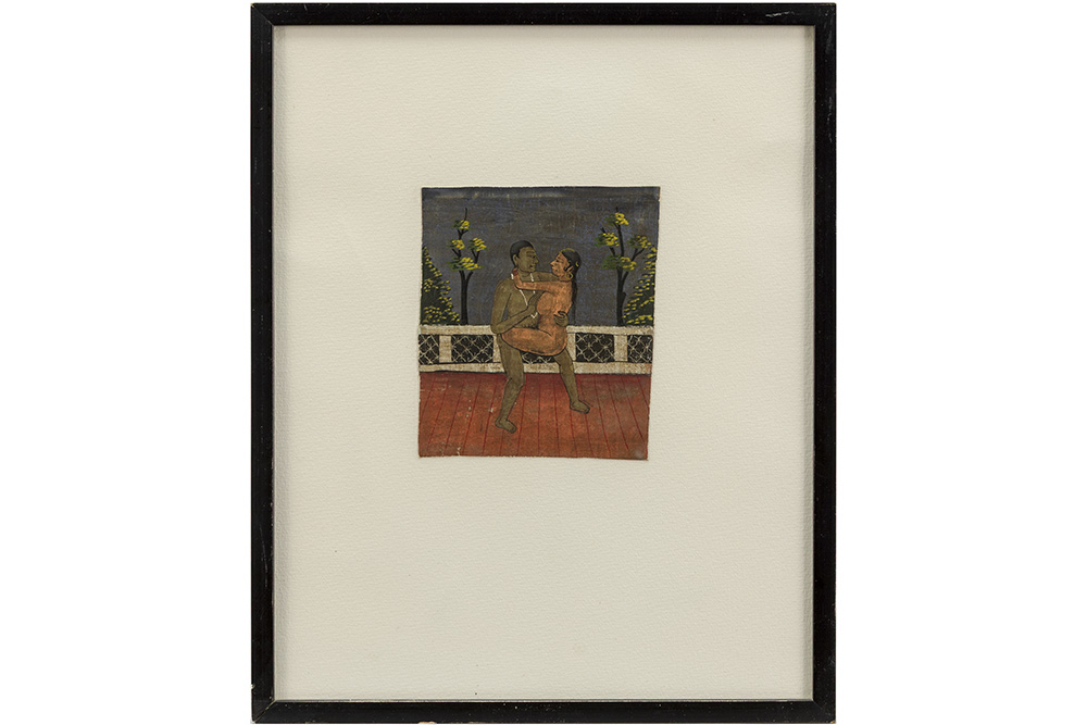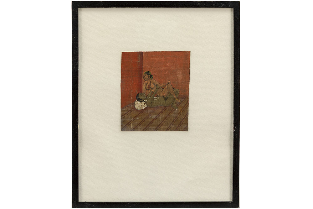 Lot met zeven Oosterse schilderingen op papier telkens met een erotisch tafereel