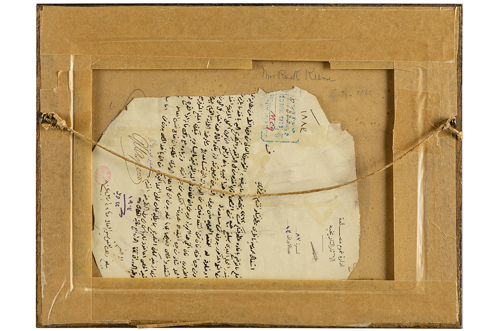 19th Cent. aquarelle of a Sphinx with an annotation on the back with a handwritten letter of archeologist Gaston Maspero