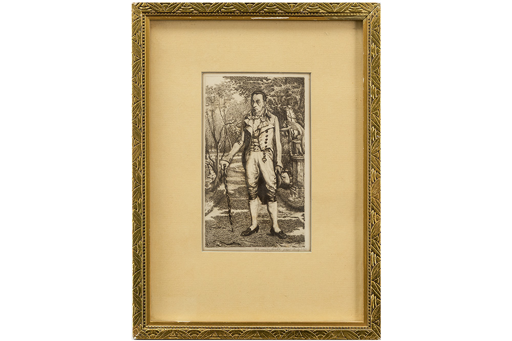VANDERBORGHT HENDRIK (1849 – 1918) ets : “Edelman in het park” – 19 x 11 in de plaat getekend en gedateerd 1882