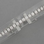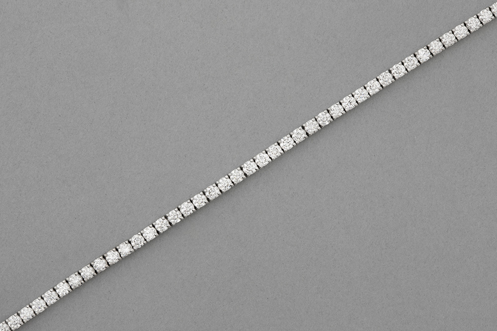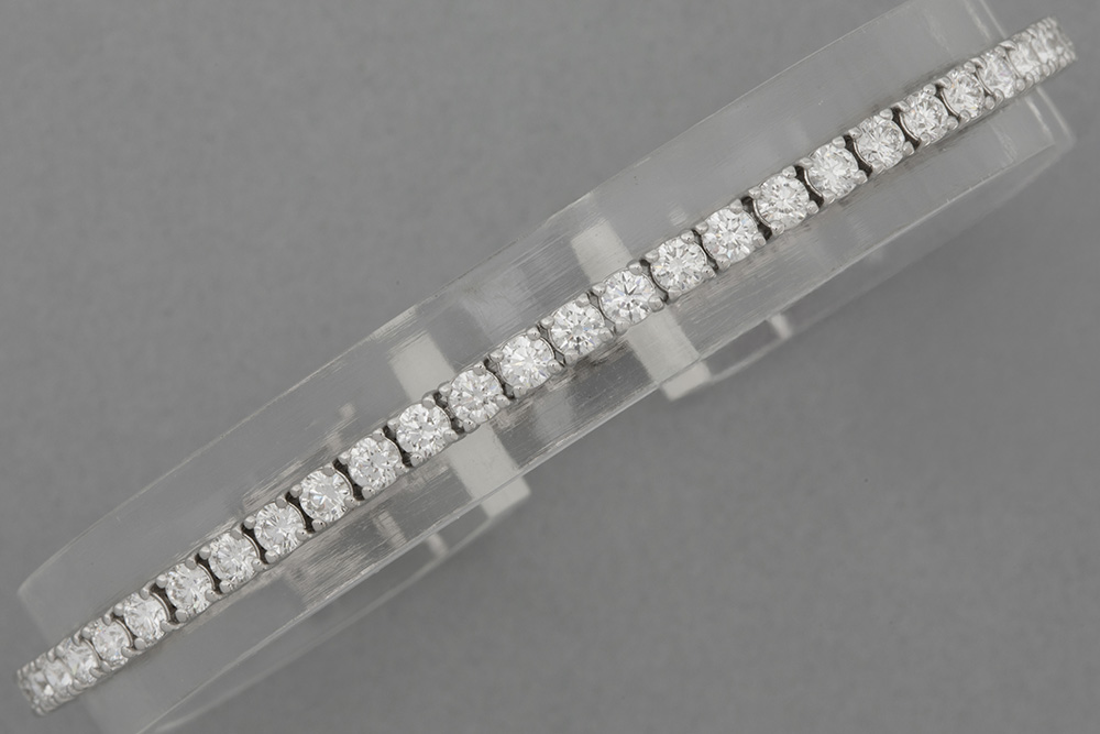 Fraai bracelet met zgn rivièremodel in witgoud (18 karaat) bezet met 3,80 karaat blauwwitte (D/E/F) kwaliteitsbriljant (Vvs/Vs) – gewicht : 8,6 gram