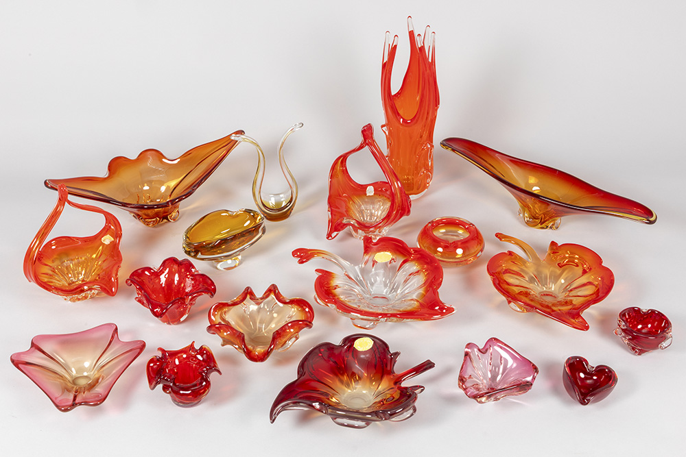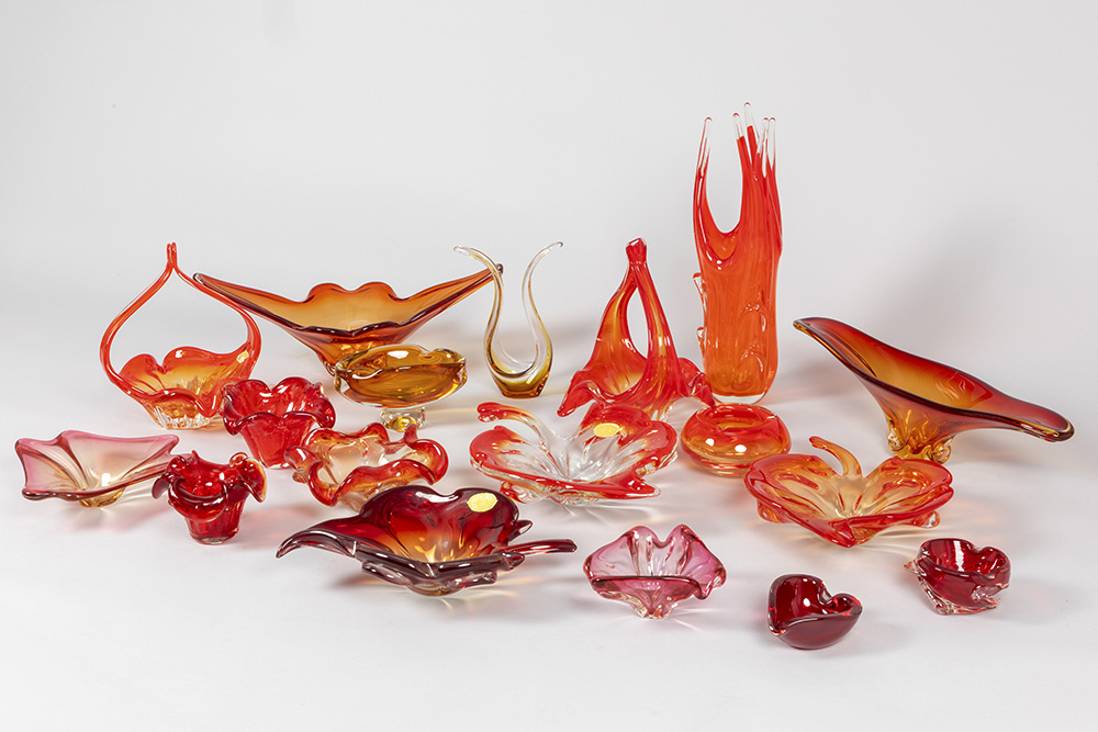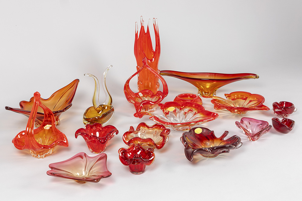Lot helderrood kristal en glas met helder rode kleur, o.a. met Val-St-Lambert