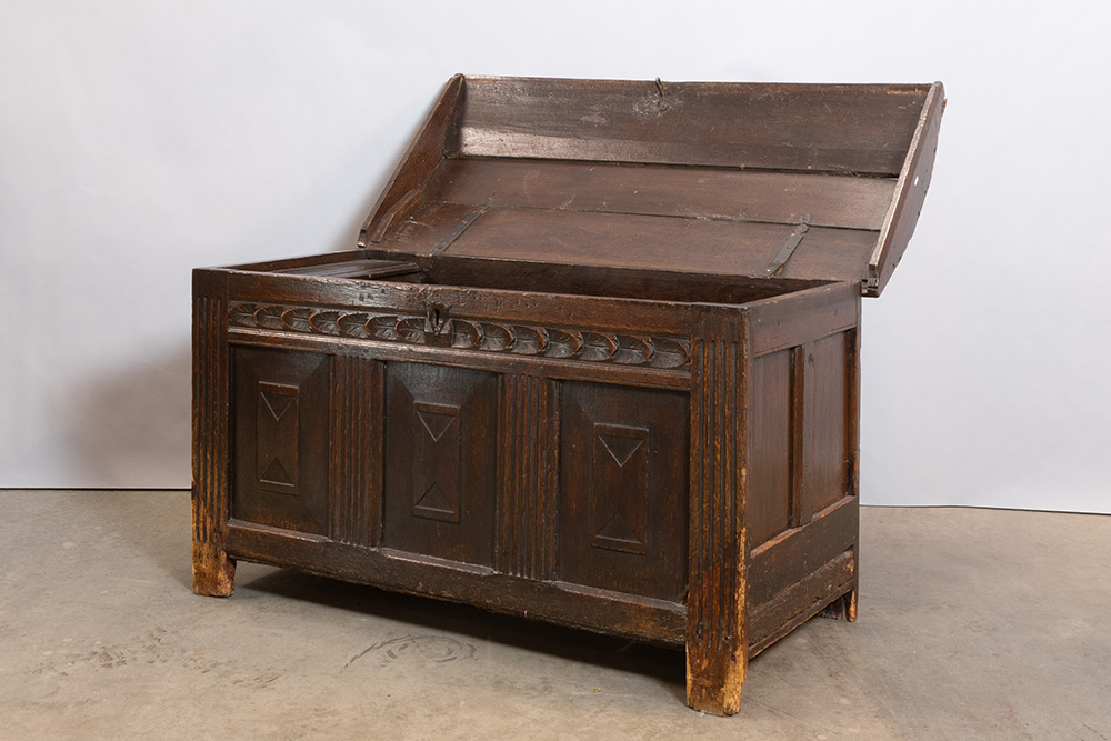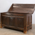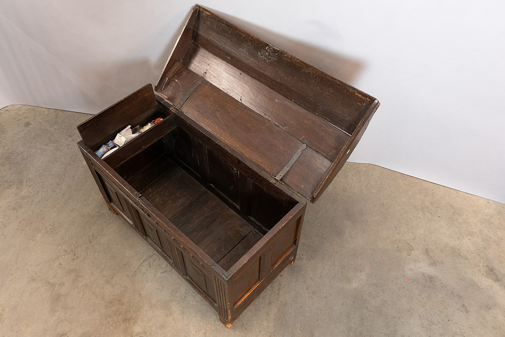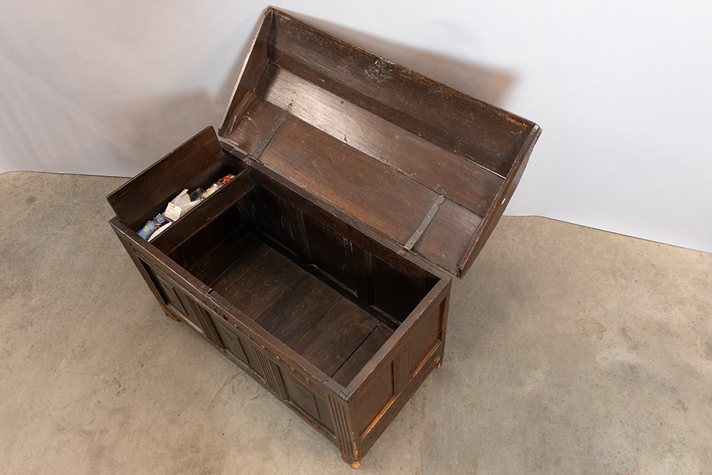 Achttiende eeuwse koffer in eik met slot in smeedijzer – 69 x 116 x 55 cm