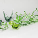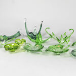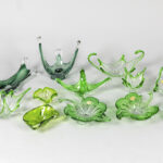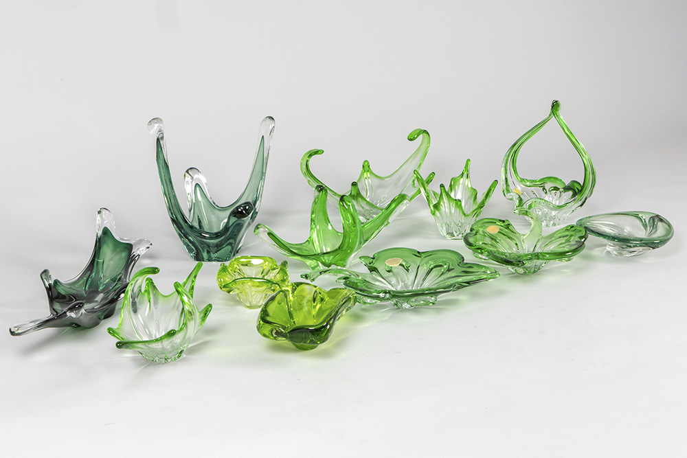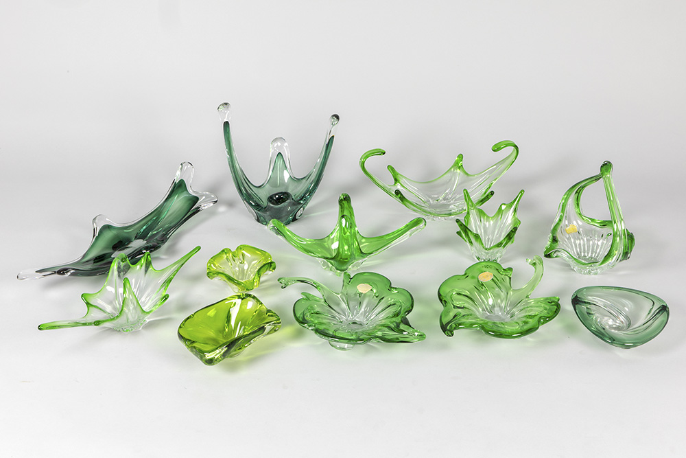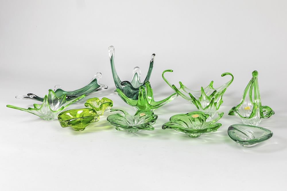 Lot groen kristal en glas, o.a. met Val-St-Lambert
