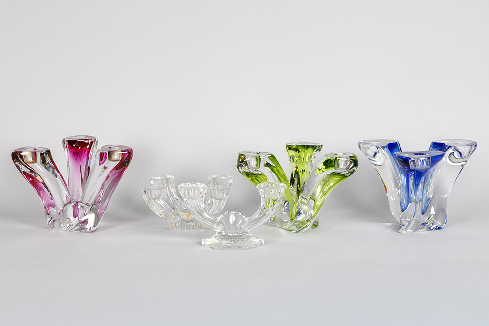 Lot 521 Lot: 521 Your Bid: Lot (5) kandelaars in kristal van Val-St-Lambert5 candlesticks in crystal Val-St-Lambert Auctionday 28/02/2026 Estimation - euro << back to the catalogue