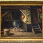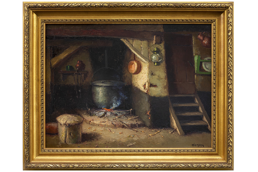 DEMOEN ALBERT (1916 – 1992) olieverfschilderij op doek : “De haard” – 60 x 80 getekend