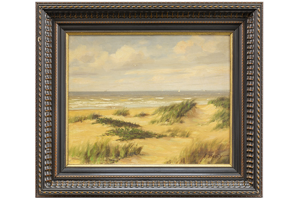 BERTY ANNE (20° EEUW) olieverfschilderij op doek : “Strandzicht” – 40 x 50 getekend