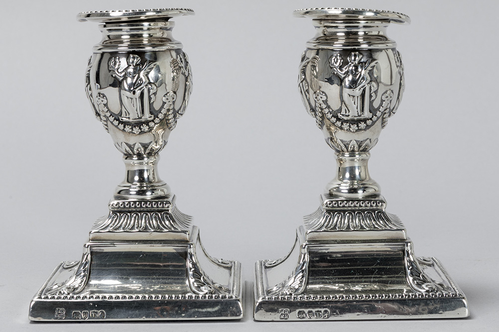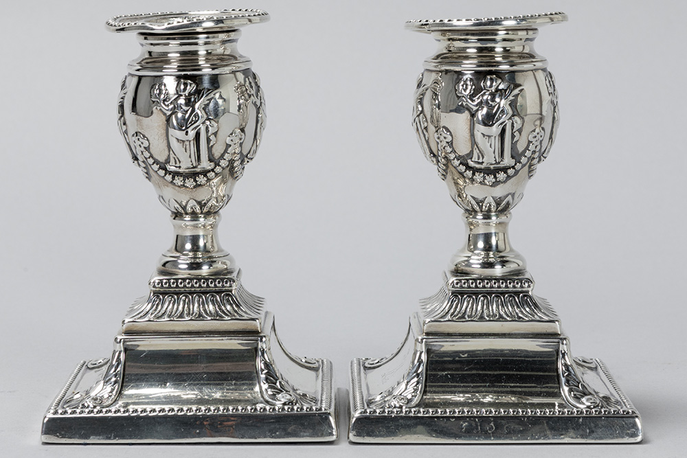 pair of antique English candlesticks in “Richard Hodd & son” signed and London 1879 marked silver