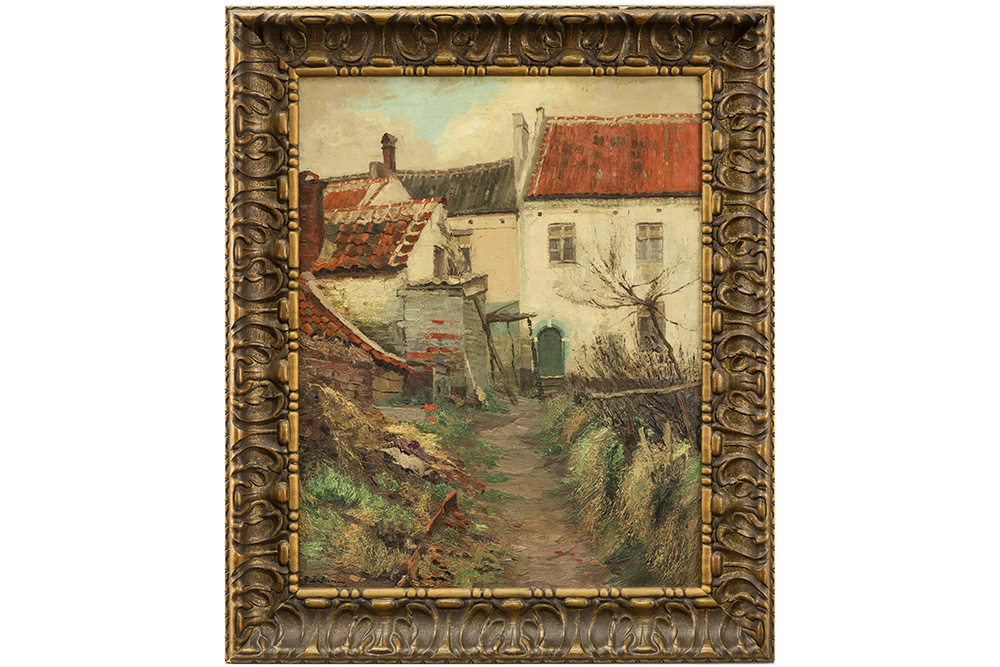 GASTON DE BIEMME olieverfschilderij op doek: “Boerenerf” – 65 x 50 getekend