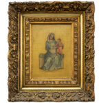 BRUNIN LEON (1861 – 1949) olieverfschilderij op paneel : “Maria met kind” – 22,5 x 17,5 getekend