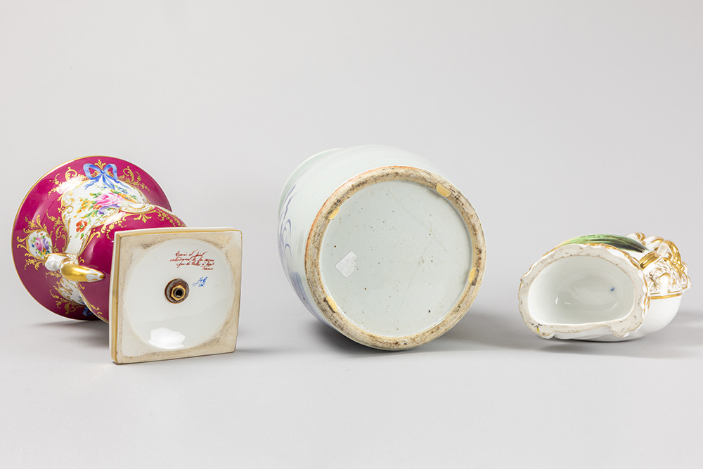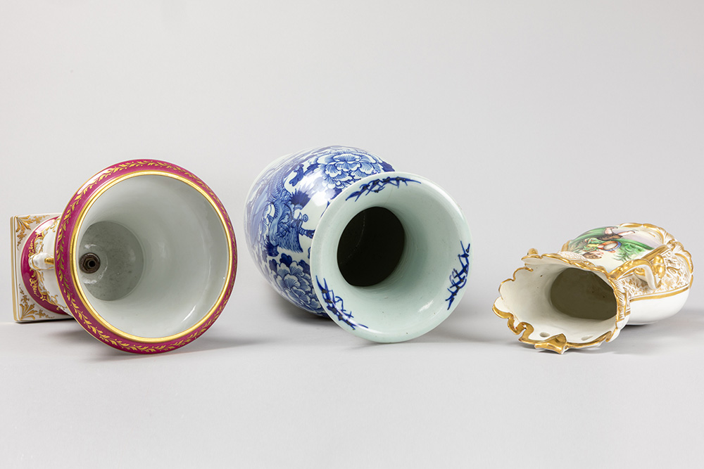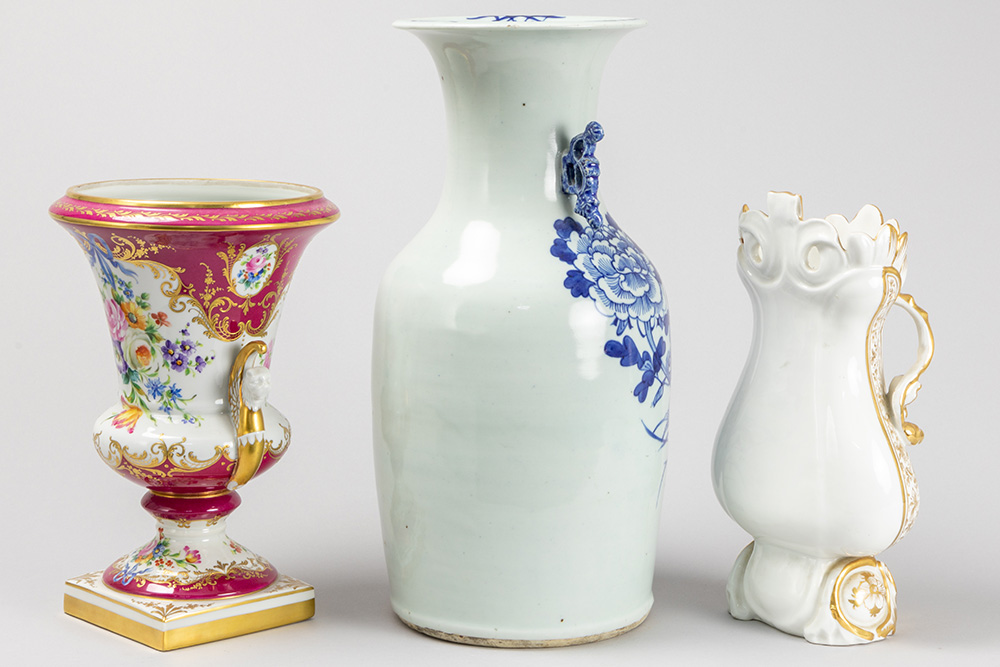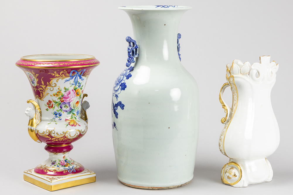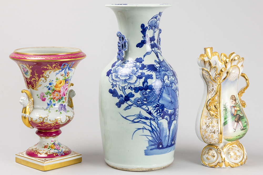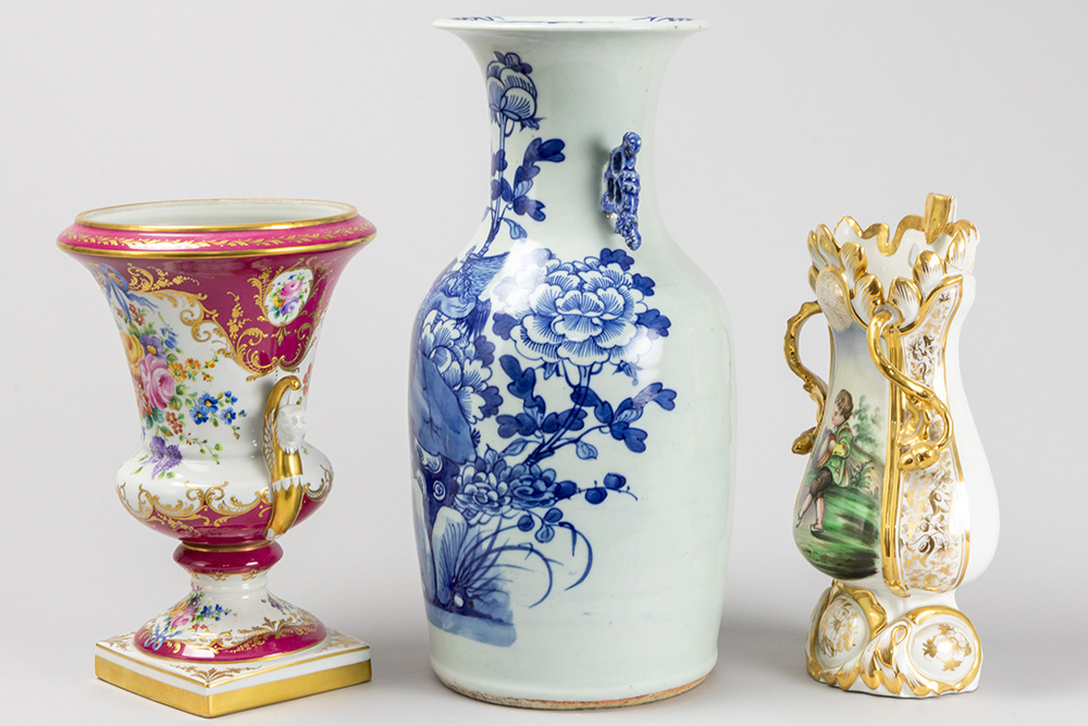 two European vases and one Chinese vase in porcelain