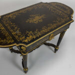 19th Cent. French Napoleon III occasional table in ebony and ebonized wood and typical decor in brass and mounting in gilded bronze