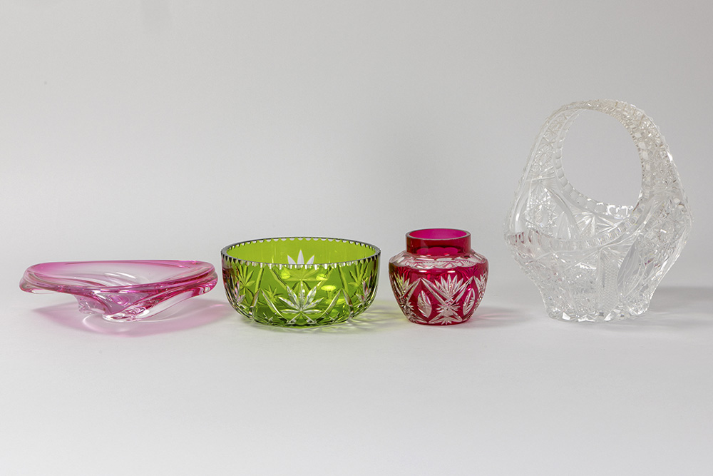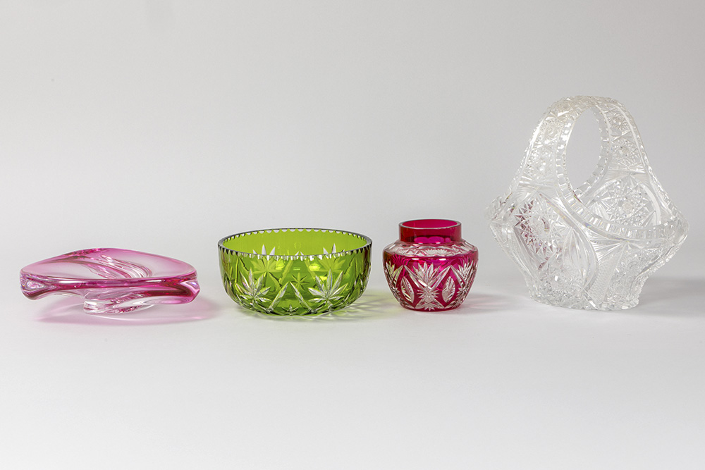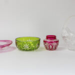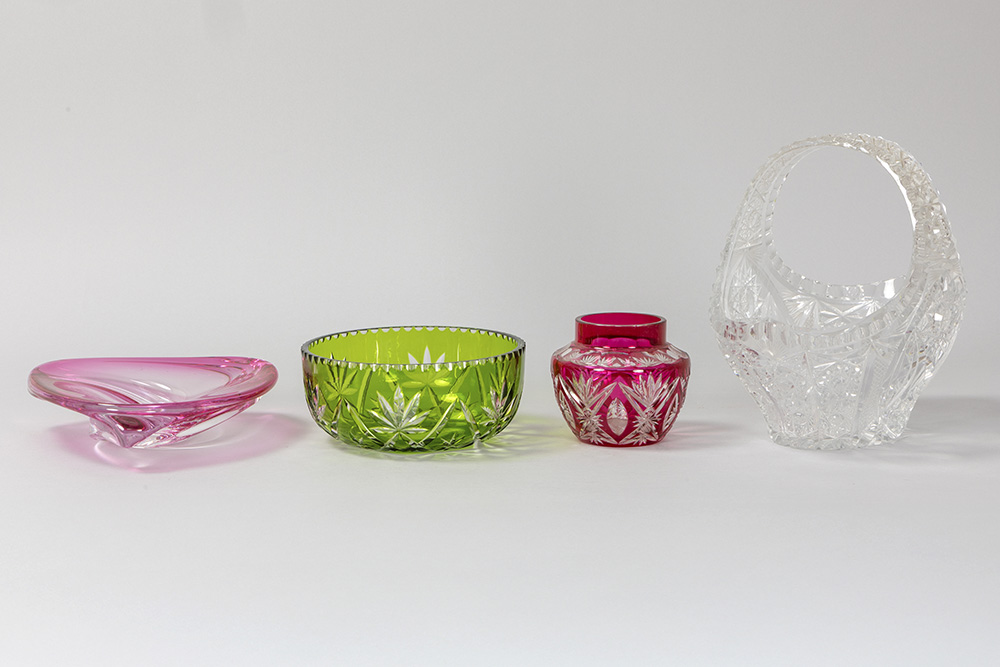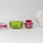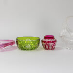various lot of Belgian VSL crystal amongst which a green bowl, a fifties’ dish, a flower basket