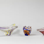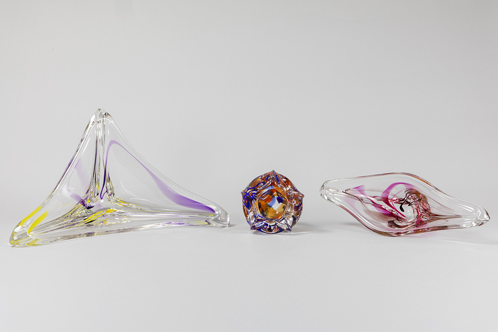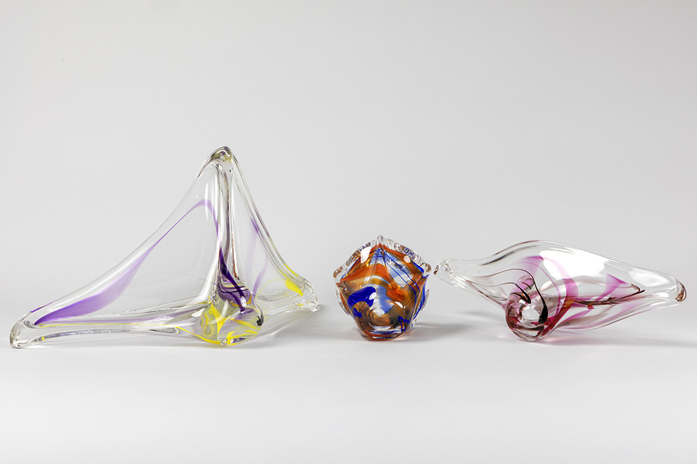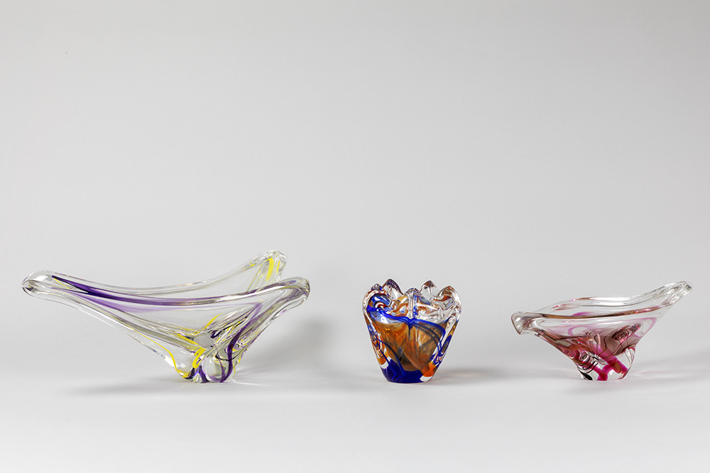 two dishes and a vase of the fifties’ in Dutch glass, marked Maastricht