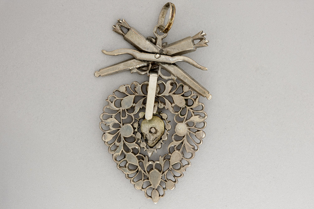 late 18th Cent. Flemish “heart” in silver (and gold) with small diamonds